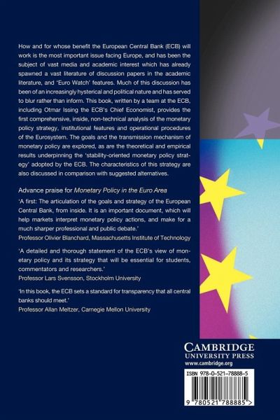 How and for whose benefit the European Central Bank (ECB) will work is the most important issue facing Europe, and has been the subject of vast media and academic interest which has already spawned a vast literature of discussion papers in the academic literature, and 'Euro Watch' features. Much of this discussion has been of an increasingly hysterical and political nature and has served to blur rather than inform. This book, written by a team at the ECB, including Otmar Issing the ECB's Chief Economist, provides the first comprehensive, inside, non-technical analysis of the monetary policy strategy, institutional features and operational procedures of the Eurosystem. The goals and the transmission mechanism of monetary policy are explored, as are the theoretical and empirical results underpinning the 'stability-oriented monetary policy strategy' adopted by the ECB. The characteristics of this strategy are also discussed in comparison with suggested alternatives.