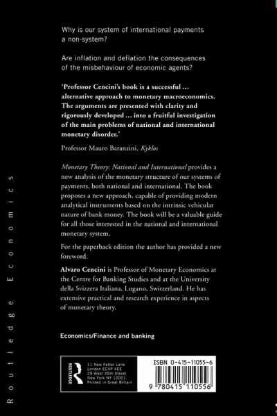 Alvaro Cencini is Professor of Monetary Economics at the Centre for Banking Studies and at the University della Svizzera Italiana, Lugano, Switzerland. He is also a member of the Centre d'études monétaires et financières at the University of Bourgogne, France.