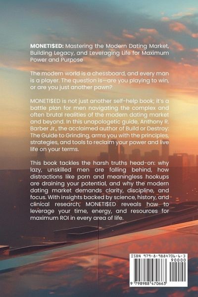MONETI$ED: Mastering the Modern Dating Market, Building Legacy, and Leveraging Life for Maximum Power and Purpose is more than a book-it's a wake-up call for men seeking clarity, control, and purpose in a world that demands more than ever from them. In this unapologetically raw and insightful guide, Anthony R. Barber Jr. dismantles outdated notions of masculinity and replaces them with actionable strategies for navigating the challenges of modern life. The book tackles the harsh realities of the monetized dating market, showing men how to break free from societal traps and focus on building their legacy. From mastering financial literacy and discipline to understanding the psychological dynamics of relationships, MONETI$ED arms readers with the tools they need to thrive in every aspect of life. Barber dives deep into topics like the pitfalls of complacency, the importance of semen retention, and the discipline required to conquer personal vices-all while drawing from historical examples, clinical research, and timeless philosophies. At its core, MONETI$ED is about transformation. It's a guide for men who refuse to settle, urging them to leverage their time, energy, and resources to create a life of power, purpose, and fulfillment. Barber challenges readers to embrace accountability, outgrow limiting beliefs, and focus on self-mastery to unlock their full potential. Through a passionate and empowering tone, Barber addresses real-world struggles, from divorce and legacy-building to navigating societal biases against men. Each chapter serves as both a mirror and a map, reflecting the reader's current state while charting a course toward a better, more fulfilling future. Whether you're a young man starting your journey or an older man seeking to reinvent himself, MONETI$ED is your blueprint for success in an era that rewards strategy, resilience, and relentless self-improvement. This is not just a book-it's a movement for men ready to reclaim their power and rewrite their stories.