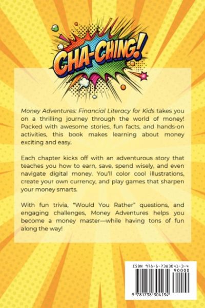 Are you looking for a way to teach your kids the value of money without boring them? Money Adventures is the perfect solution! Say goodbye to confusing books-this one speaks your child's language, turning financial concepts into fun stories, games, and activities. Perfect for kids aged 7-13, it makes saving, budgeting, and even digital payments easy to understand and exciting to learn! The book covers financial literacy in 8 awesome chapters: ¿¿¿¿ Introduction to Money: Discover what money is all about, with fun facts and activities that make it easy to understand. ¿¿¿¿ Earning Money: Learn about the value of work and how earning money can be rewarding and fun. ¿¿¿¿ Spending Money: Explore the difference between needs and wants-learn to be a smart spender! ¿¿¿¿ Saving Money: Set cool savings goals and learn about the power of delayed gratification. Watch your savings grow! ¿¿¿¿ Investing: Find out how investing works with simple, exciting lessons that show how money can grow over time. ¿¿¿¿ Banking Basics: Get to know banking with easy explanations about deposits, withdrawals, and managing your own account. ¿¿¿¿ Debit & Credit: Understand how to use credit responsibly and learn smart tips for future financial success. ¿¿¿¿ Digital Money: Prepare for the future with lessons on digital payments, cryptocurrency, and staying safe online. And that's not all-Money Adventures is packed with extra fun features: ¿¿¿¿ Awesome Trivia: Fun "Did you know?" facts that make learning about money cool! ¿¿¿¿ Games & Activities: Play games that sharpen money skills and make learning interactive. ¿¿¿¿ Color-in Illustrations: Get creative with designs that let kids make the book their own! ¿¿¿¿ Simple Lessons: Easy-to-follow explanations that break down money concepts into bite-sized pieces. Would You Rather Questions: Fun, thought-provoking questions that get kids thinking about money decisions in a whole new way. Perfect for parents, grandparents, and teachers, Money Adventures is more than just a book-it's a fun-filled journey that helps kids build creativity, problem-solving skills, and financial smarts. Get your child started on a financial adventure today and give them skills they'll use for a lifetime! This is the gift that keeps on giving! 4o