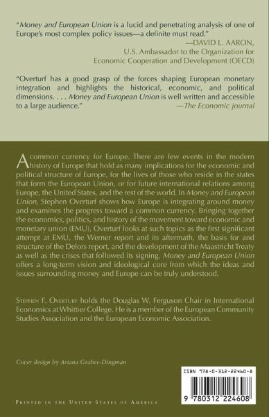Bringing together the economics, politics, and history of the movement toward economic and monetary union (EMU), the author looks at such topics as the first significant attempt at EMU, the Werner report and its aftermath, and the development of the Maastricht Treaty and the crises that followed its signing.