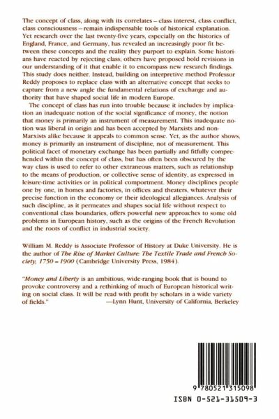 The concept of class, along with its correlates -m class interest, class conflict, class consciousness - ramain indispensable tools of historical explanation. Yet research over the last twenty-five years, especially on the histories of England, France, and Germany, has revealed an increasingly poor fit between these concepts and the reality they purport to explain. Some historians have reacted by rejecting class; others have proposed bold revisions in our understanding of it that enable it to encompass new research findings. This study does neither. Instead, building on interpretive method Professor Reddy proposes to replace class with an alternative concept that seeks to capture from a new angle the fundamental relations of exchange and authority that have shaped social life in modern Europe.