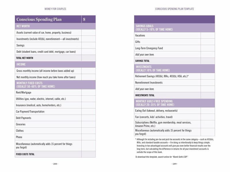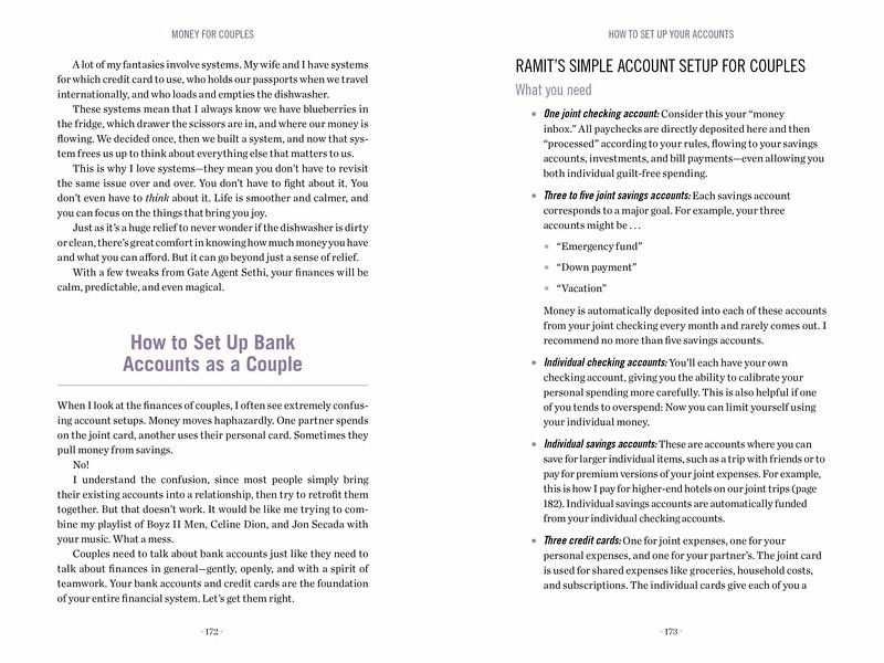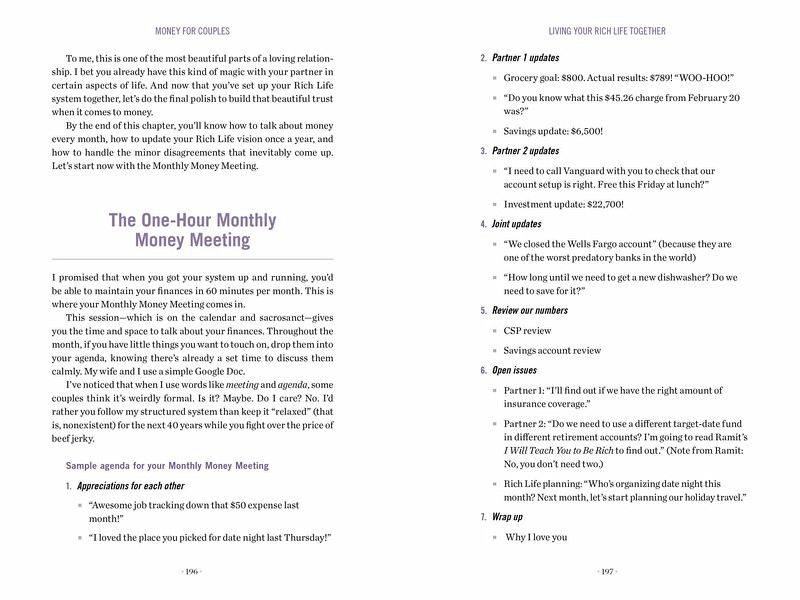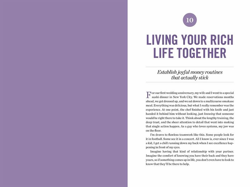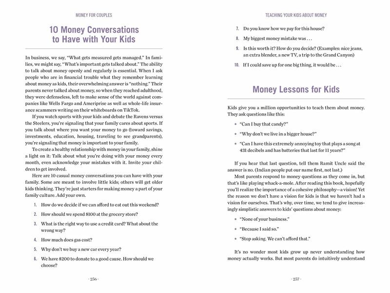 Introduction: We Need to Learn to Talk About Money Chapter 1: Your First Good Money Conversation Chapter 2: Why You Treat Money the Way You Do Chapter 3: Designing Your Rich Life Vision—Together Chapter 4: Meet Your Money Dials Chapter 5: A Snapshot of Your Financial Life Chapter 6: How to Talk About Money Without Fighting Chapter 7: Creating Your Conscious Spending Plan Chapter 8: What Your Numbers Tell You Chapter 9: How to Set Up Your Finances Chapter 10: Living Your Rich Life Together Appendices: Ramit's Rules, templates Index