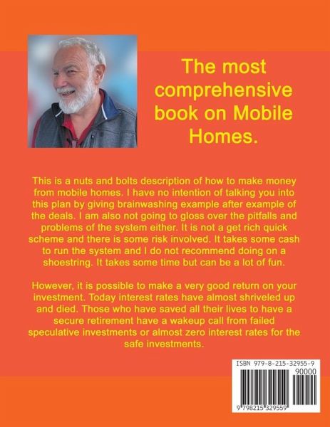 The most comprehensive book on Mobile Homes. This is a nuts and bolts description of how to make money from mobile homes. I have no intention of talking you into this plan by giving brainwashing example after example of the deals. I am also not going to gloss over the pitfalls and problems of the system either. It is not a get-rich-quick scheme, and there is some risk involved. It takes some cash to run the system, and I do not recommend doing it on a shoestring. It takes some time but can be a lot of fun. However, it is possible to make an excellent return on your investment. Today interest rates have almost shriveled up and died. Those who have saved all their lives to secure retirement have a wake-up call from failed speculative investments or almost zero interest rates for safe investments.