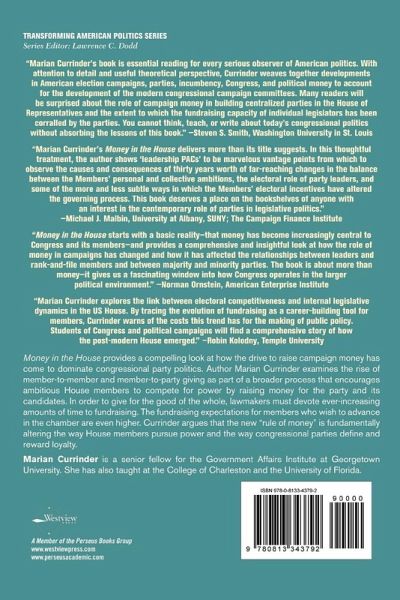 Money in the House provides a pompelling look at how the drive to raise campaign money has come to dominate congressional party politics. Currinder examines the rise of member-to-member and member-to-party giving as part of a broader process that encourages ambitious House members to compete for power by raising money for the party and its candidates.