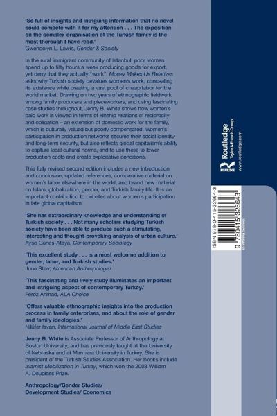 In the rural immigrant community of Istanbul, poor women spend up to fifty hours a week producing goods for export, yet deny that they actually 'work'. Money Makes Us Relatives asks why Turkish society devalues women's work, concealing its existence while creating a vast pool of cheap labor for the world market. Drawing on two years of ethnographic fieldwork among family producers and pieceworkers, and using fascinating case studies throughout, Jenny B. White shows how women's paid work is viewed in terms of kinship relations of reciprocity and obligation - an extension of domestic work for the family, which is culturally valued but poorly compensated. Whilst offering the benefits of social identity and long-term security, women's work also reflects global capitalism's ability to capture local cultural norms, and to use these to lower production costs and create exploitative conditions. This fully revised second edition includes a new introduction and conclusion, updated references, comparative material on women's labor elsewhere in the world, and brand new material on Islam, globalization, gender and Turkish family life. It is an important contribution to debates about women's participation in late global capitalism.