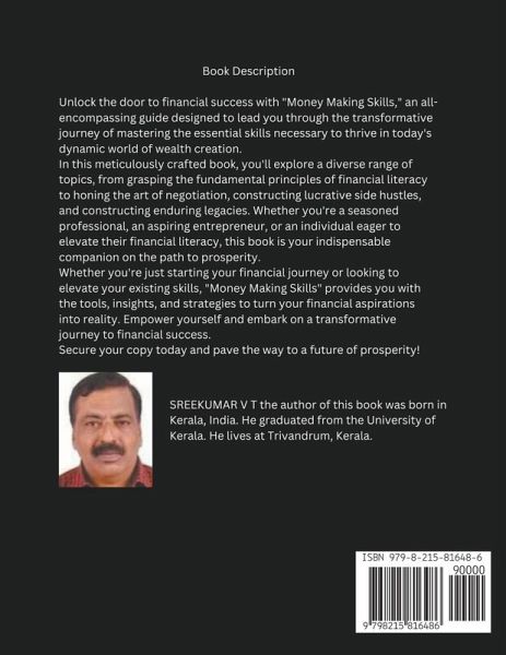 Unlock the door to financial success with "Money Making Skills," an all-encompassing guide designed to lead you through the transformative journey of mastering the essential skills necessary to thrive in today's dynamic world of wealth creation. In this meticulously crafted book, you'll explore a diverse range of topics, from grasping the fundamental principles of financial literacy to honing the art of negotiation, constructing lucrative side hustles, and constructing enduring legacies. Whether you're a seasoned professional, an aspiring entrepreneur, or an individual eager to elevate their financial literacy, this book is your indispensable companion on the path to prosperity. Key Features: Practical Insights: Each chapter is brimming with practical insights derived from real-world examples, offering actionable steps that you can implement in your life immediately. Expert Advice: Benefit from expert advice seamlessly woven throughout the book, providing a wealth of knowledge from seasoned professionals in the field. Case Studies: Dive into real-world case studies that vividly illustrate successful money-making strategies, offering inspiration and invaluable lessons for your own financial journey. Comprehensive Coverage: From the basics of financial literacy to advanced investment strategies, this book covers a spectrum of topics, ensuring a holistic understanding of money-making skills. Chapters at a Glance: Financial Literacy 101: Understand the language of money and build a solid foundation for financial success. Unlocking the Mindset: Develop the mindset crucial for success in money-making endeavours. Identifying Profitable Opportunities: Master the art of recognizing and capitalizing on lucrative prospects. Strategic Planning for Financial Success: Plan strategically to achieve your financial goals. Mastering Negotiation Techniques: Hone negotiation skills for financial gain. Building a Lucrative Side Hustle: Create additional income streams from scratch. Investing Wisely: Navigate the world of investments for wealth accumulation. The Power of Networking: Turn connections into opportunities and cash. Adapting to Market Trends: Stay ahead in a changing world by understanding market dynamics. Monetizing Your Passion: Turn hobbies into sustainable income streams. Digital Dollars: Navigate the online marketplace and harness the power of digital commerce. Time Management for Maximum Profitability: Optimize your time for increased productivity and financial success. Overcoming Financial Challenges: Develop resilience and a roadmap to overcome setbacks. Legacy Building: Create enduring wealth that lasts for generations. The Entrepreneurial Mind: Learn the essentials of starting and scaling your own business. Empower Yourself Today: Whether you're just starting your financial journey or looking to elevate your existing skills, "Money Making Skills" provides you with the tools, insights, and strategies to turn your financial aspirations into reality. Empower yourself and embark on a transformative journey to financial success. Secure your copy today and pave the way to a future of prosperity!