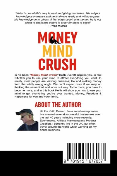 Are You Fed Up With Living Paycheck to Paycheck? Is Every Day Just Like Groundhog Day? - The SAME Boring, Tired Old Routine? Are You CRAVING more? Hold tight, you are about to change your life FOREVER!! In his book, "Money Mind Crush" Keith Everett, a successful Entrepreneur for over 40yrs inspires you, in fact, he DARES you to use your mind to attract all the money that you could want. Most people are "Sleeping Awake"... missing out on life, missing out on freedom, missing out on their TRUE potential. You can't expect more if you keep thinking in the same tired, worn-out way. Think better - Get MORE! It's time to WAKE UP and learn new ways... Don't settle for less. Life is too short to keep repeating the same tired old ways of thinking, that get most people absolutely NOWHERE. They spend their lives spinning their wheels, repeating the same old mistakes. What are those mistakes actually costing you in lost earnings, lost time with your family, and lost time missing out on the life you deserve? There is a better way...what you need is a NEW way of thinking.. For things to change, you have to change, many people are on the hamster wheel to nowhere. Nothing changes until we, ourselves decide to. In this book, Keith will show you how to think in a different, he will show you how to think your way to SUCCESS and attract all the good things back into your life.. It's CRAZY! Most people are too busy attracting what they don't want. Learn the secret of the emotional bank account. Learning this one technique alone will fire more dollars into your physical bank account. This is just one of the many techniques you are about to learn. You are about to increase your MIND POWER 100% What you can expect from Money Mind Crush Keith will show you Bullet-Proof ways to create as much money as you could possibly want without working your tail off doing it. Keith shares Life's Golden Triangle - The three-step formula to a seriously happy Life, master this, and you are GOLDEN! Also, Keith shares: The Art of Rich Thinking, how making money is an art form. WINNING through self-doubt - KILL IT, who needs self-doubt? let's get rid of it. How To unclutter your mind and steer yourself to an astounding life of SUCCESS and Happiness. And of course much, much more.