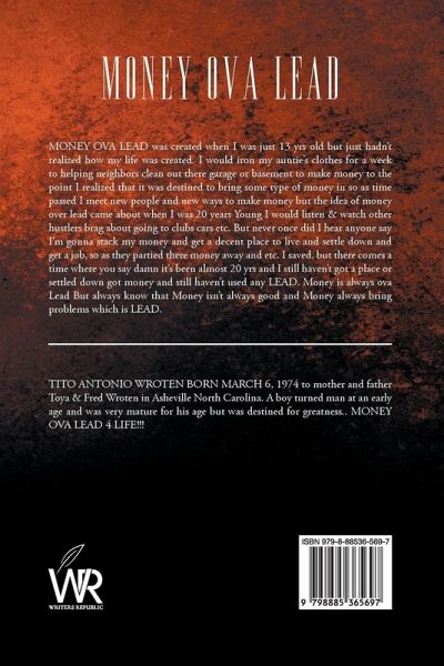 MONEY OVA LEAD was created when I was just 13 yrs old but just hadn't realized how my life was created. I would iron my auntie's clothes for a week to helping neighbors clean out there garage or basement to make money to the point I realized that it was destined to bring some type of money in so as time passed I meet new people and new ways to make money but the idea of money over lead came about when I was 20 years Young I would listen & watch other hustlers brag about going to clubs cars etc. But never once did I hear anyone say I'm gonna stack my money and get a decent place to live and…mehr
