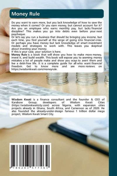 Do you want to earn more, but you lack knowledge of how to save the money when it comes? Or you earn money, but cannot account for it? Are you an employee who earns monthly pay, but lacks financial discipline? This makes you go into debts even before your next paycheque.Or let's say you run a business that should be bringing you income, but each time, you find yourself at the verge of going into financial crisis. Or perhaps you have money but lack knowledge of smart investment models and strategies to work with. This leaves you skeptical about investing your money.If this is your case, your solution is here. Money Rule is a book that will show you how to make more money, invest it, and build wealth. This book will expose you to seeming money mistakes a lot of people make and show you ways to avert them and live a debt-free life. It is a complete guide for all who want financial freedom. Get to know more and see more reviews on https://wisdomkwati.com/moneyrule.