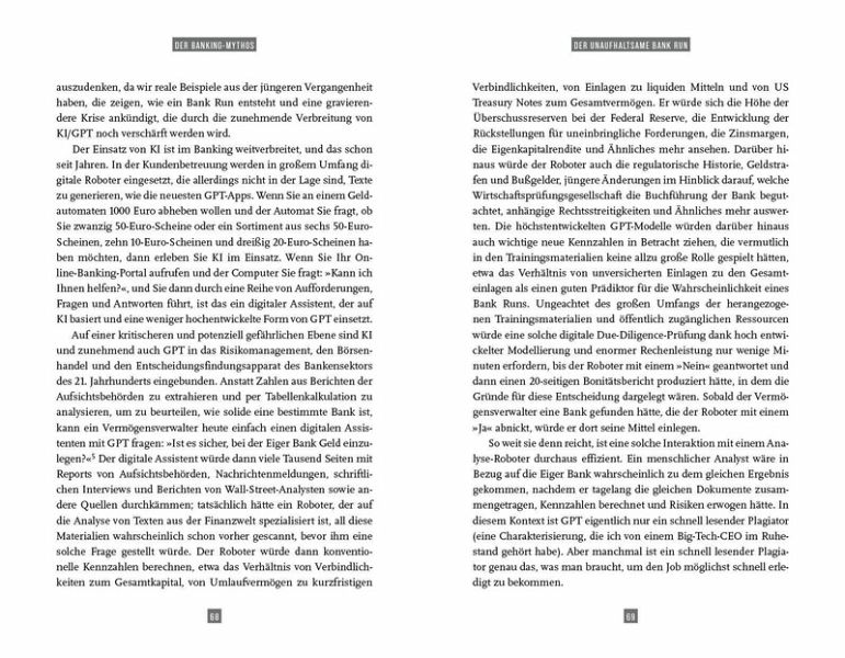 Künstliche Intelligenz ist allgegenwärtig: in Politik, Nachrichten, Werbung, Apps, aber auch in Gesprächen mit Familie und Freunden. Seit OpenAi ChatGPT im November 2022 veröffentlichte, ist ein neues Zeitalter angebrochen. Aber was bedeutet das Wachstum der KI für den Finanzmarkt? In diesem wichtigen Buch zeichnet der Wall-Street-Veteran und ehemalige Berater des Verteidigungsministeriums James Rickards ein umfassendes Bild der Gefahr, die KI für die globale Finanzordnung und die nationale Sicherheit darstellt. Er zeigt, dass KI wesentliche Eigenschaften wie Instinkt, Risikobereitschaft, Verstand und Einfühlungsvermögen fehlen, die es braucht, um den weltweiten Finanzmarkt zu regeln und die Sicherheit vor Cyberkriminalität und Deepfakes zu gewährleisten. MoneyGPT ist ein Appell, die Gefahren der Künstlichen Intelligenz rechtzeitig zu erkennen und mit menschlicher Logik und gesundem Menschenverstand einzuschreiten.