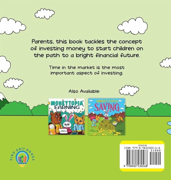 Parents, this book tackles the concept of investing money to start children on the path to a bright financial future. Research shows that money habits are set by age seven, but only 23% of families have money conversations with their children. The Moneytopia series is designed to help teach invaluable money habits and concepts in easy-to-understand, child-friendly terms. Paired with beautiful illustrations, this fun story follows along with a bunny, a bear, and a fox as they're given a school assignment to invest "Topians," the book's fun term for money. Your child will learn the three key elements to investing money-a lesson that'll last a lifetime. Author Dr. Shanshan Peer's Moneytopia series encourages children to be empowered about their future and makes a great educational tool for parents, schools, daycares, in-home and anywhere else children might frequent. By tackling financial literacy early, children have a better chance of growing into financially stable adults. Give your child a strong start! Scroll up and one-click buy your copy now!