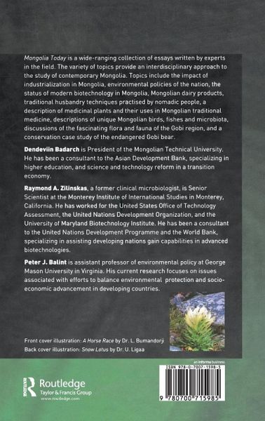 These essays provide an interdisciplinary approach to the study of contemporary Mongolia, ranging from industrialization, environmental policies, biotechnology and husbandry to descriptions of Mongolian flora and fauna.