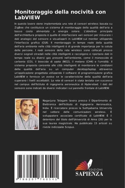 In questo lavoro viene implementata una rete di sensori wireless basata su ZigBee che costituisce un sistema di monitoraggio della qualità dell'aria a basso costo alimentato a energia solare. L'obiettivo principale dell'architettura proposta è quello di interfacciare vari sensori per misurare i dati analogici del sensore e visualizzarli in LabVIEW sul monitor utilizzando l'interfaccia grafica (GUI). Il monitoraggio in tempo reale della qualità dell'aria ambiente nelle città intelligenti è di grande importanza per la salute delle persone. I nodi sensore della rete wireless sono collocati presso diversi segnali stradali nelle città intelligenti e raccolgono e riportano dati in tempo reale su diversi gas presenti nell'ambiente, come il monossido di carbonio (CO), il biossido di azoto (NO2), il metano (CH4) e l'umidità. Il sistema proposto consente alle città intelligenti di monitorare le condizioni della qualità dell'aria su un computer desktop/laptop attraverso un'applicazione progettata utilizzando il software di programmazione grafica LabVIEW e fornisce un avviso se le caratteristiche della qualità dell'aria superano i livelli accettabili. La rete di sensori è stata testata con successo nel campus dell'Istituto di ingegneria aeronautica di Hyderabad. I dati del sensore sono indicati da diversi indicatori sul pannello frontale di LabVIEW.