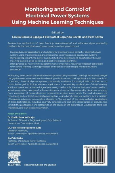 Monitoring and Control of Electrical Power Systems using Machine Learning Techniques bridges the gap between advanced machine learning techniques and their application in the control and monitoring of electrical power systems, particularly relevant for heavily distributed energy systems and real-time application. The book reviews key applications of deep learning, spatio-temporal, and advanced signal processing methods for monitoring power quality. This reference introduces guiding principles for the monitoring and control of power quality disturbances arising from integration of power electronic devices and discusses monitoring and control of electrical power systems using benchmark test systems for the creation of bespoke advanced data analytic algorithms.
