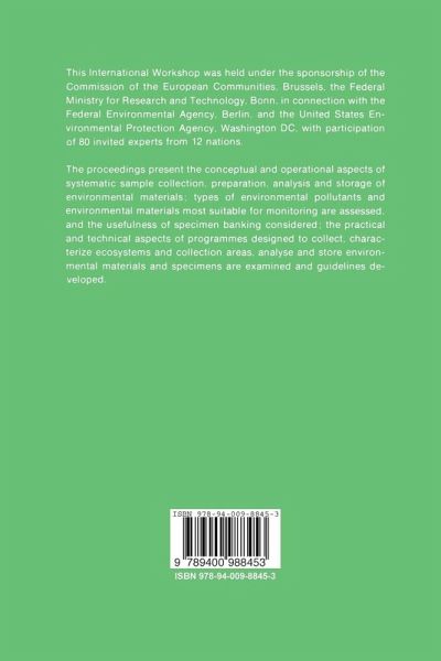 Conclusions and Recommendations.- I. Introduction.- 1. Terminology and definitions.- 2. Objectives of the workshop and the final document.- 3. Monitoring environmental materials.- 4. Specimen banking.- II. Selection of Pollutants and Pollutant Categories of Interest for Monitoring Environmental Materials.- III. Selection of Environmental Materials Related to Ecosystems and Pollutants or Pollutant Categories.- 1. General aspects.- 2. Review of past and current programmes.- 3. Criteria for the selection of ecosystem compartments and processes.- IV. Technical Considerations.- 1. General remarks.- 2. Collection, collection equipment, sample preparation and transportation.- 3. Container materials.- 4. Storage methods.- 5. Conclusions and recommendations.- V. Analytical Aspects.- 1. Analytical methods.- 2. Profile and fingerprint methods.- 3. Partly of fully automatized analysis.- 4. Standardisation and quality control.- VI. Programme Design and Organizational Aspects.- 1. Goal and objectives.- 2. Statistical and biomathematical requirements.- 3. General guidelines.- 4. Recommendations for further research.- VII. Cost Estimation.- 1. Monitoring environmental materials.- 2. Specimen banking.- 3. Conclusions.- VIII. Ethical and Legal Considerations.- Annex I.- Abstracts of working papers.- Annex II.- Working papers submitted for the Workshop.- Monitoring inorganic pollutants in domestic and farm animals.- Monitoring environmental materials and specimen banking using terrestrial insects with particular reference to inorganic substances and pesticides.- Use of oysters and related molluscs as biological monitors of synthetic organic pollutants.- Specimen banking marine organisms.- Advantage and problems of usung wild-living animals as indicators for environmental pollution.- Naturally occuring steroids and synthetic hormones as sensitive monitoring compounds for the suitability of pretreatment procedures in specimen banking and for the long-term stability of stored biological samples.- Container materials for the preservation of trace substances in environmental specimens.- Monitoring of plants and soil for analysis of possible hazardous contaminants and banking of these environmental specimens.- Non-halogenated organic compounds in aquatic and terrestrial ecosystems.- Organic and inorganic compounds - analytical aspects.- Use of macroalgae as a reference material for pollutant monitoring and specimen banking.- A comparative analysis among responses to acute toxicity in standard laboratory bioassays and in natural streams.- Specimen bank research at the National Bureau of Standards to insure proper scientific protocols for the sampling, storage and analysis of environmental materials.- Monitoring environmental materials and specimen banking - state-of-the-art of Japanese experience and knowledge.- Organo-halogenated compounds in aquatic ecosystems.- Statement of polycyclic aromatic hydrocarbons.- Organo-halogenated compounds in farm and domestic animals.- Monitoring environmental materials and specimen banking for organohalogenated compounds in aquatic ecosystems.- Experiences in monitoring and banking human biological specimen.- Organohalogenated compounds in plants and soil.- Terrestrial vertebrate animals as biological monitors of pollution.- The mussel watch biological monitoring research program.- Collection, storage and analysis of freshwater fish for monitoring environmental contaminants.- State-of-the-art of biological specimen banking in the Federal Republic of Germany.- Ecological action of mercury by-products on different animaltissues.- Organo-halogenated compounds in terrestrial wildlife.- Basic ecological concepts and urban ecological systems.- Considerations applicable to the monitoring of organohalogenated compounds in terrestrial wildlife, especially birds.- The role of deep-sea organisms in monitoring environmental xenobiotics.- The grey mullet (Mugil cephalus L.) as a marine bioindicator.- Archiving wildlife specimens for future analysis.- Trace metals in living marine resources taken from north atlantic waters.- Some U.S. legal concerns in obtaining, archiving, and using non-human tissue samples.- Pollution effects in freshwater communities.- The use of fishes in the monitoring environmental materials and specimen banking.- Monitoring serial inorganic pollutants by plant indicator specimens.- Choice of species, sampling and sample pretreatment for subsequent analysis and banking of marine organisms useful for Hg, Pb and Cd monitoring.- Specimen banking of food samples for long term monitoring of nutrient trace elements.- Annex III.- List of contributors and participants.