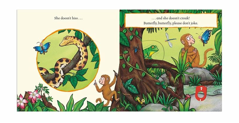 A jungle animal board book with push, pull and slide mechanisms, based on the bestselling Monkey Puzzle by Julia Donaldson and Axel Scheffler