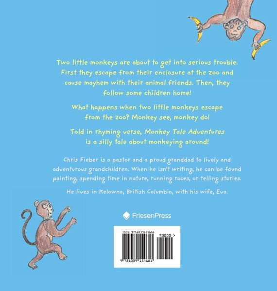 Two little monkeys are about to get into serious trouble. First they escape from their enclosure at the zoo and cause mayhem with their animal friends. Then, they follow some children home! What happens when two little monkeys escape from the zoo? Monkey see, monkey do! Told in rhyming verse, Monkey Tale Adventures is a silly tale about monkeying around!