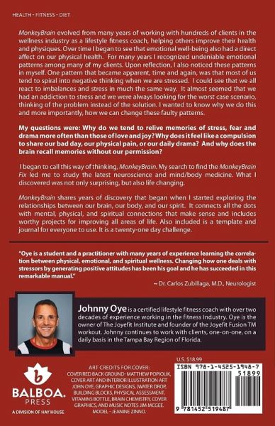 MonkeyBrain evolved from many years of working with hundreds of clients in the wellness industry as a lifestyle fitness coach, helping others improve their health and physiques. Over time I began to see that emotional well-being also had a direct affect on our physical health. For many years I recognized undeniable emotional patterns among many of my clients. Upon reflection, I also noticed these patterns in myself. One pattern that became apparent, time and again, was that most of us tend to spiral into negative thinking when we are stressed. I could see that we all react to imbalances and stress in much the same way. It almost seemed that we had an addiction to stress and we were always looking for the worst case scenario, thinking of the problem instead of the solution. I wanted to know why we do this and more importantly, how we can change these faulty patterns.My questions were: Why do we tend to relive memories of stress, fear and drama more often than those of love and joy? Why does it feel like a compulsion to share our bad day, our physical pain, or our daily drama? And why does the brain recall memories without our permission? I began to call this way of thinking, MonkeyBrain. My search to find the MonkeyBrain Fix led me to study the latest neuroscience and mind/body medicine. What I discovered was not only surprising, but also life changing. MonkeyBrain shares years of discovery that began when I started exploring the relationships between our brain, our body, and our spirit. It connects all the dots with mental, physical, and spiritual connections that make sense and includes worthy projects for improving all areas of life. Also included is a template and journal for everyone to use. It is a twenty-one day challenge.