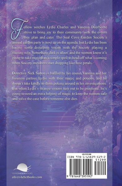 Fellow witches Lydie Charles and Vanessa Deerborne strive to bring joy to their community with the events they plan and cater. The Seal Cove Garden Society's annual garden party is next up on the agenda, but Lydie has been having some disturbing visons with the Society playing a starring role. Something dark is afoot, and the women know it's going to take more than a simple spell to head off what's coming when Society members start dropping like rose petals. Detective Nick Sutton is baffled by his cousin Vanessa and her business partner Lydie with their magic and potions, and he doesn't take kindly to them poking around in his investigations. But when Lydie's strange visions turn out to be prophetic, he's going to need an extra helping of magic to keep the women safe and solve the case before someone else dies.