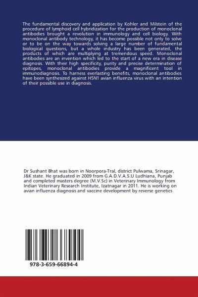The fundamental discovery and application by Kohler and Milstein of the procedure of lymphoid cell hybridization for the production of monoclonal antibodies brought a revolution in immunology and cell biology. With monoclonal antibody technology, it has become possible not only to solve or to be on the way towards solving a large number of fundamental biological questions, but a whole industry has been generated, the products of which are multiplying at tremendous speed. Monoclonal antibodies are an invention which led to the start of a new era in disease diagnosis. With their high specificity, purity and precise determination of epitopes, monoclonal antibodies provide a magnificent tool in immunodiagnosis. To harness everlasting benefits, monoclonal antibodies have been synthesized against H5N1 avian influenza virus with an intention of their possible use in diagnosis.