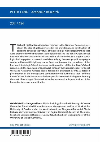 This book highlights an important moment in the history of Romanian sociology: The idea of getting involved in the knowledge and construction of social life as well as the virtues of the sociologic monograph method that were promoted by the Bucharest Sociologic School and the Banat-Crisana Social Institute. This work now forwards an analysis of Dimitrie Gusti's original sociologic thinking system, a theoretic model underlying the monographic campaigns conducted by multidisciplinary teams. Rural studies were the central axis of the Bucharest Sociologic School. An important innovation of Dimitrie Gusti's School is examined: the launching of social work through the Superior School for Social Work and Assistance Princess Ileana, founded in Bucharest in 1929. A detailed presentation of the monographs conducted by the Bucharest School and the Banat-Crisana Social Institute with their specific characteristics is given, bearing the mark of sociologist Dimitrie Gusti and other remarkable personalities of the Romanian inter-war scientific elite.