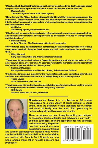 Teenage drama student tired of playing middle-aged grownups? Find stage pieces tailored to the real-world in this amazing new collection. Monologues for Teens II is the latest installment in The Young Actor Series and the long-awaited follow-up to the award-winning Monologues for Teens. Full voting member of the National Television Academy and longtime NBC Tonight Show sketch comedy performer Mike Kimmel has been writing, acting, producing, and teaching for decades. Now he's here to share a curated collection of the best comedy and drama monologues for 2020. This is a collection with depth, heart, and pathos to challenge young actors and bring out their very best performances. These are monologues they've never heard before - and monologues they'll remember you by! No props. No costumes. No entrances. No exits. No fluff. No bad language. No snarky, mean-spirited scenarios. No talking down to you - or your audience. Gender-neutral monologues that can be performed equally well by all actors. If you're searching for fresh, emotionally rich performance material with a positive, optimistic viewpoint presenting ethical questions for our youth - then order this clear and definitive new resource - Monologues for Teens II - today. Nail your next audition tomorrow.