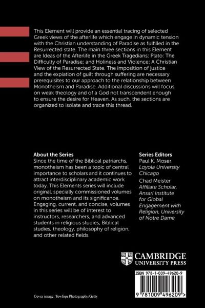 This Element explores Greek views of the afterlife, contrasting them with Christian beliefs of Paradise in the Resurrected state. It explores the relationship between Monotheism and Paradise, the difficulty of immortality, and the weak theology of a transcendent God.