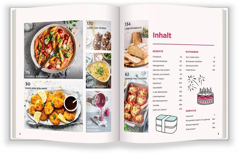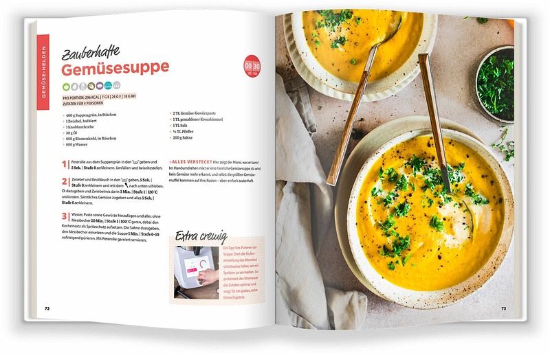 Du kennst es: Chaos in der Küche, unterschiedliche Vorlieben am Tisch und der Alltag läuft auf Hochtouren? Dieses Kochbuch bietet einfache, schnelle Rezepte, die Groß und Klein lieben. Perfekt für stressige Tage und gemütliche Familienabende - und das alles ohne Fertigprodukte! Ob du für den nächsten Kindergeburtstag planst, Pausendosen vorbereitest oder einfach etwas Schnelles für den Abend zaubern möchtest - hier findest du Rezepte, die jeden Geschmack treffen. Dank flexibler Ideen und cleverer Gemüse-Tricks wird auch die "Nudeln mit Butter"-Phase überbrückt. Und das Beste: Mit dem Monsieur Cuisine wird alles noch schneller und einfacher!