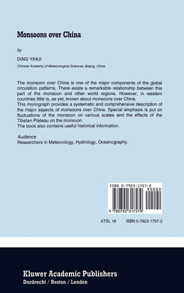 The monsoon over China is one of the major components of the general circulation on a global basis. Its activity be ars a significant regional implication in East Asia and Southeast Asia. Recently, the remarkable relationship and teleconnection between this part of the monsoon and other regions over the world have been revealed. However, little of the overall picture of monsoons over China is known by meteorologists in English-speaking countries. This monograph provides the first opportunity to extensively introduce this subject and give a comprehensive and systematic description of the major aspects of monsoons over China, with a special emphasis on the fluctuations of the monsoon on various scales and the effects of the Tibetan Plateau on the monsoon. Much highly original material and achievements Chinese and Western meteorologists have made from the past 20 years have been incorporated with a unifying approach. In each chapter, the observational and theoretical (including modelling) treatment will be closely combined in order to fully illustrate the relevent problems. The unique thermal and dynamical effects of the Tibetan Plateau on the monsoon circulation features wh ich are one of the central problems of the Asian monsoon are highlights of this monograph. Researchers in meteorology and weather forecasters should find this book a very useful introduction to monsoons over China, not only for its systematic treatment of the subject, but also because of its considerable historical information. This mono graph is equally suitable for graduates or more advanced students in meteorology, hydrology, and oceanography.