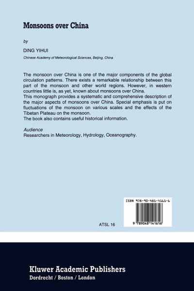 The monsoon over China is one of the major components of the general circulation on a global basis. Its activity be ars a significant regional implication in East Asia and Southeast Asia. Recently, the remarkable relationship and teleconnection between this part of the monsoon and other regions over the world have been revealed. However, little of the overall picture of monsoons over China is known by meteorologists in English-speaking countries. This monograph provides the first opportunity to extensively introduce this subject and give a comprehensive and systematic description of the major aspects of monsoons over China, with a special emphasis on the fluctuations of the monsoon on various scales and the effects of the Tibetan Plateau on the monsoon. Much highly original material and achievements Chinese and Western meteorologists have made from the past 20 years have been incorporated with a unifying approach. In each chapter, the observational and theoretical (including modelling) treatment will be closely combined in order to fully illustrate the relevent problems. The unique thermal and dynamical effects of the Tibetan Plateau on the monsoon circulation features wh ich are one of the central problems of the Asian monsoon are highlights of this monograph. Researchers in meteorology and weather forecasters should find this book a very useful introduction to monsoons over China, not only for its systematic treatment of the subject, but also because of its considerable historical information. This mono graph is equally suitable for graduates or more advanced students in meteorology, hydrology, and oceanography.