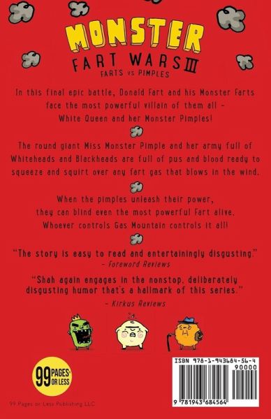 In this final epic battle, Donald Fart and his Monster Farts face the most powerful villain of them all--White Queen and her Monster Pimples! The round giant Miss Monster Pimple and her army full of Whiteheads and Blackheads are full of pus and blood ready to squeeze and squirt over any fart gas that blows in the wind. When the pimples unleash their power, they can blind even the most powerful Fart alive. Whoever controls Gas Mountain controls it all.