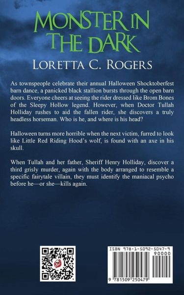 As townspeople celebrate their annual Halloween Shocktoberfest barn dance, a panicked black stallion bursts through the open barn doors. Everyone cheers at seeing the rider dressed like Brom Bones of the Sleepy Hollow legend. However, when Doctor Tullah Holliday rushes to aid the fallen rider, she discovers a truly headless horseman. Who is he, and where is his head? Halloween turns more horrible when the next victim, furred to look like Little Red Riding Hood's wolf, is found with an axe in his skull. When Tullah and her father, Sheriff Henry Holliday, discover a third grisly murder, again with the body arranged to resemble a specific fairytale villain, they must identify the maniacal psycho before he-or she-kills again.