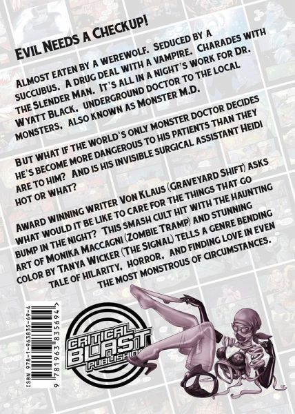 Dr. Wyatt Black wants out of the job of monster doctor but when a killer from his past shows up to murder his patients he is pulled back into the deadly practice of monster mending. Good thing his sexy invisible assistant Heidi H. Hyde is on the scene. It's misadventures in a world of monsters and medicine that will leave you in stitches. It's time to give evil a FULL DOSE! ALL the Monster M.D. stories and the making of collected for the first time!