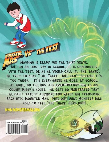 Monster Mas has entered the third grade and right away he is confronted by the 'Thark', the testing shark. Prior to third grade he never felt the pressure of a test. With the test always on his mind he can't concentrate on anything let alone doing well or passing an exam. He finally learns from his teacher, Ms. Honey that he is experiencing testing anxiety, and gives him a strategy to help him deal with it. In addition, he signs up for a Saturday test prep class to prepare for the big test and beat the test, or score very high!