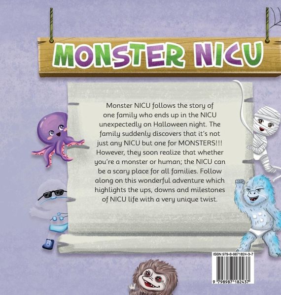 Monster NICU follows the story of one family who ends up in the NICU unexpectedly on Halloween night. The family suddenly discovers that it's not just any NICU but one for MONSTERS!!! However, they soon realize that whether you're a monster or human, the NICU can be a scary place for all families. Follow along on this wonderful adventure which highlights the ups, downs and milestones of NICU life with a very unique twist.