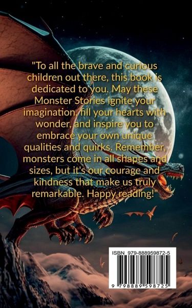 To all the brave and curious children out there, this book is dedicated to you. May these Monster Stories ignite your imagination, fill your hearts with wonder, and inspire you to embrace your own unique qualities and quirks. Remember, monsters come in all shapes and sizes, but it's our courage and kindness that make us truly remarkable. Happy reading!