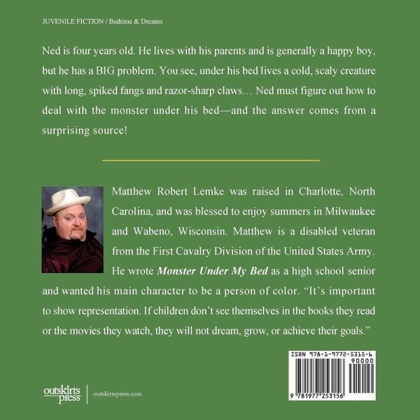 Ned is four years old. He lives with his parents and is generally a happy boy, but he has a BIG problem. You see, under his bed lives a cold, scaly creature with long, spiked fangs and razor-sharp claws... Ned must figure out how to deal with the monster under his bed-and the answer comes from a surprising source!
