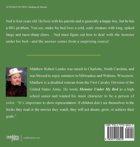 Ned is four years old. He lives with his parents and is generally a happy boy, but he has a BIG problem. You see, under his bed lives a cold, scaly creature with long, spiked fangs and razor-sharp claws... Ned must figure out how to deal with the monster under his bed-and the answer comes from a surprising source!