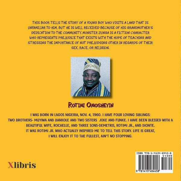 This book tells the story of a young boy who visits a land that is unfamiliar to him, but he is well received because of his grandmother's dedication to the community. Monster Zunga is a fiction character who represents prejudice that exists with the hope of teaching and stressing the importance of not prejudging other in regards of their sex, race, or religion.