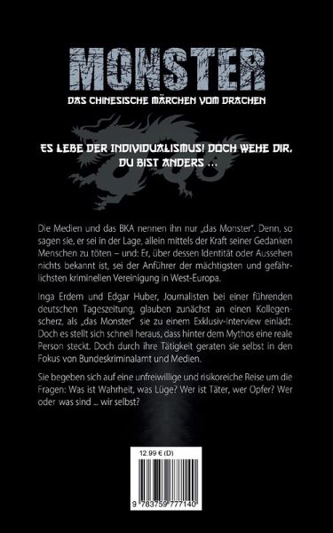 Die Medien und das BKA nennen ihn nur "das Monster". Denn, so sagen sie, er sei in der Lage, allein mittels der Kraft seiner Gedanken Menschen zu töten - und: Er, über dessen Identität oder Aussehen nichts bekannt ist, sei der Anführer der mächtigsten und gefährlichsten kriminellen Vereinigung in West-Europa. Inga Erdem und Edgar Huber, Journalisten bei einer führenden deutschen Tageszeitung, glauben zunächst an einen Kollegenscherz, als das "Monster", sie zu einem Exklusiv-Interview einlädt. Doch es stellt sich schnell heraus, dass hinter dem Mythos eine reale Person steckt. Doch durch ihre Tätigkeit geraten sie selbst in den Fokus von Bundeskriminalamt und Medien. Sie begeben sich auf eine unfreiwillige und risikoreiche Reise um die Fragen: Was ist Wahrheit, was Lüge? Wer ist Täter, wer Opfer? Wer oder was sind ... wir selbst?