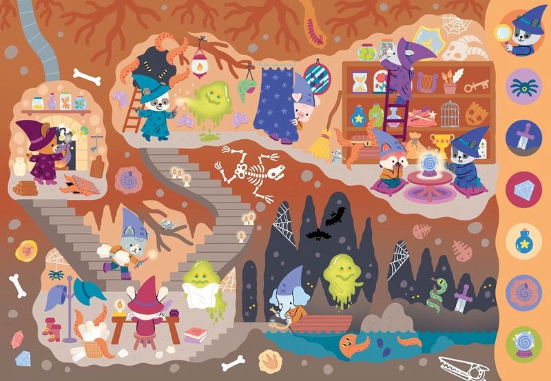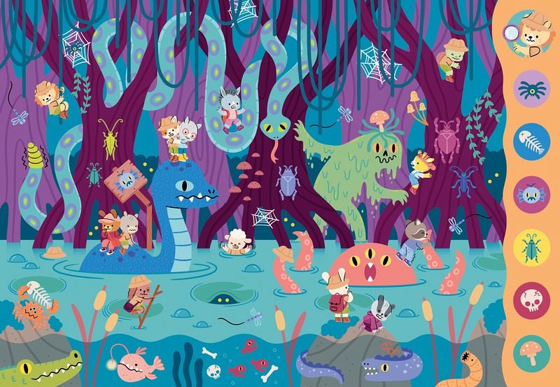 In diesem fesselnden Such- und Findbuch werden sich die kleinen Betrachter in aufwändigen Szenen von Monstern, Kreaturen und magische Wesen verlieren. Ein unterhaltsamer Zufluchtsort für Kinder. Es macht großen Spaß, die lebendigen Illustrationen auf der Suche nach Verborgenem zu erkunden und Details in liebevoll gruseligen Szenen zu entdecken. Ein Pappbilderbuch, das mit der angeborenen Neugier von Kindern und deren Befriedigung spielt, in wimmeligen Bildern etwas Verstecktes aufzudecken und wiederzuerkennen.