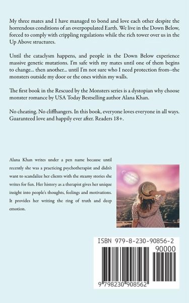My three mates and I have managed to bond and love each other despite the horrendous conditions of an overpopulated Earth. We live in the Down Below, forced to comply with crippling regulations while the rich tower over us in the Up Above structures. Until the cataclysm happens, and people in the Down Below experience massive genetic mutations. I'm safe with my mates until one of them begins to change... then another... until I'm not sure who I need protection from--the monsters outside my door or the ones within my walls. The first book in the Rescued by the Monsters series is a dystopian why choose monster romance by USA Today Bestselling author Alana Khan. No cheating. No cliffhangers. In this book, everyone loves everyone in all ways. Guaranteed love and happily ever after. Readers 18+.