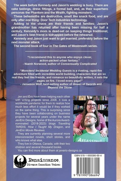 The week before Kennedy and Jason's wedding is busy. There are cake tastings, dress fittings, a formal ball, and, as their superhero personas the Phantom and the Wraith, fighting monsters. These behemoths are destructive, smell like snack food, and are only after one thing: Door Tech Industries technology. Adding to the chaos are their friends and families; Jason's grandmother has returned after having been missing for half a century, Kennedy's mom is dead-set on keeping things traditional, and Jason's best friend is kidnapped before the rehearsal. Kennedy and Jason just want to get married, preferably before the next monster attack. The second book of four in The Gates of Westmeath series.