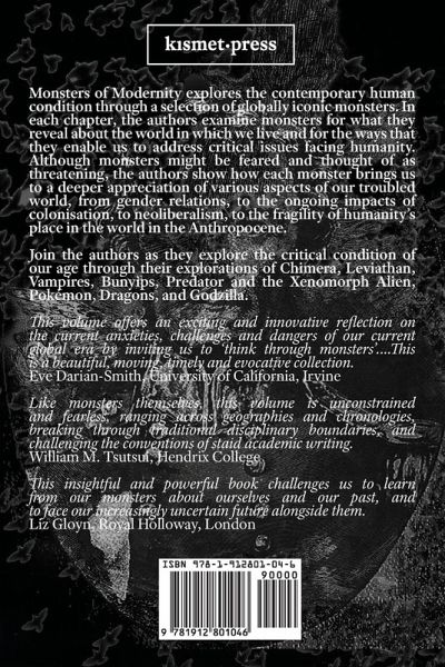 Julian C. H. Lee, Hariz Halilovich, Ani Landau-Ward, Peter Phipps, & Richard J. Sutcliffe Monsters of Modernity explores the contemporary human condition through a selection of globally iconic monsters. The authors explore diverse monsters for what they reveal about the world in which we live and for the ways that they enable us to address critical issues facing humanity. Although monsters might be feared and thought of as threatening, the authors show how each monster brings us to a deeper appreciation of various aspects of our troubled world, from gender relations, to the ongoing impacts of colonisation, to neoliberalism, to the fragility of humanity’s place in the world in the Anthropocene. Monsters of Modernity explores new ground in the conventions of authorship and scholarship, and will be a valuable companion to anyone interested in the study of monsters as well as those seeking engaging ways to explore and teach key global issues. Join the authors as they explore the critical condition of our age through their explorations of Chimera, Leviathan, Vampires, Bunyips, Predator and the Xenomorph Alien, Pokémon, Dragons, and Godzilla. Authors Julian C.H. Lee is Associate Professor in Global Studies at RMIT University, Australia. He is the author of a number of books including Policing Sexuality: Sex, Society and the State; Second Thoughts: On Globalisation, Malaysia, Society and Self; and Women’s Activism in Malaysia.. Ani Landau-Ward is associated with the Social and Global Studies Centre and the Centre for Urban Research at RMIT University. Her scholarly writing has been published in the Springer Global Encyclopedia of Public Administration, Public Policy, and Governance; the New Zealand Journal of Asian Studies, and the volume Urban Asias: Essays on Futurity Past and Present. Hariz Halilovich is an award-winning social anthropologist and author; he is Associate Professor and Vice-Chancellor’s Senior Research Fellow at the Social and Global Studies Centre, RMIT University, Melbourne. His main research areas include place-based identity politics, forced migration, politically motivated violence, memory studies and human rights. Peter Phipps is a Senior Lecturer in Global Studies at RMIT University, where he is also associated with the Social and Global Studies Centre. He has published in journals including Ethnos, Alternatives, and Communication, Politics and Culture on Indigenous festivals, commemorations, tourism and the politics of cultural globalization. Richard J. Sutcliffe is an independent researcher who has conducted research on new religious movements and urban youth culture. His writing has been published in places including the journal Canberra Anthropology, and in the volumes Paganism Today, Managing Modernity in the Western Pacific, The Malaysian Way of Life, Second Thoughts: On Malaysia, Globalisation, Society and Self, and the Springer Global Encyclopedia of Public Administration, Public Policy, and Governance. Contents I) Here Be Dragons II) The Functional Autonomy of Monsters — A Metalogue III) Polymorphous Monstrosity: Some Chimerical Reflections on the Question — What Is a Monster? IV) The Bunyip, and Other Australian Monsters V) Leviathan, the Sovereign VI) Is Alien to Predator as Nature Is to Culture? VII) Vampires and Ratko Mladi¿: Balkan Monsters and the Monstering of People VIII) Pokémon Reaping IX) Godzilla, The Unmocked God Authorship, Acknowledgements, and Other Notes Not Elsewhere Well-Accommodated