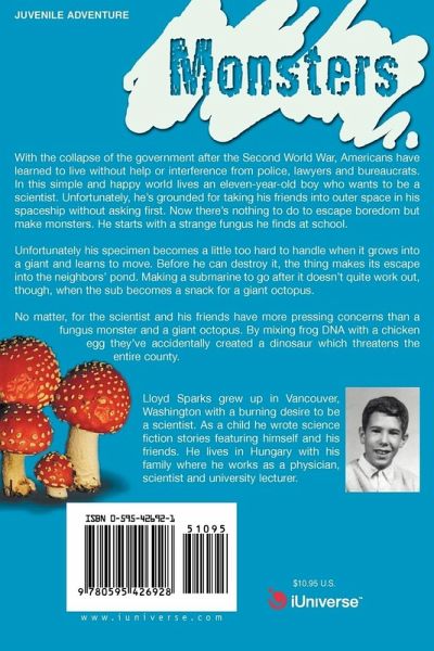 With the collapse of the government after the Second World War, Americans have learned to live without help or interference from police, lawyers and bureaucrats. In this simple and happy world lives an eleven-year-old boy who wants to be a scientist. Unfortunately, he's grounded for taking his friends into outer space in his spaceship without asking first. Now there's nothing to do to escape boredom but make monsters. He starts with a strange fungus he finds at school. Unfortunately his specimen becomes a little too hard to handle when it grows into a giant and learns to move. Before he can destroy it, the thing makes its escape into the neighbors' pond. Making a submarine to go after it doesn't quite work out, though, when the sub becomes a snack for a giant octopus. No matter, for the scientist and his friends have more pressing concerns than a fungus monster and a giant octopus. By mixing frog DNA with a chicken egg they've accidentally created a dinosaur which threatens the entire county.