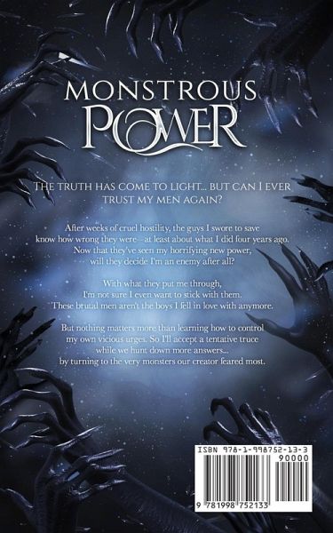 The truth has come to light... but can I ever trust my men again? After weeks of cruel hostility, the guys I swore to save know how wrong they were-at least about what I did four years ago. Now that they've seen my horrifying new power, will they decide I'm an enemy after all? With what they put me through, I'm not sure I even want to stick with them. These brutal men aren't the boys I fell in love with anymore. But nothing matters more than learning how to control my own vicious urges. So I'll accept a tentative truce while we hunt down more answers... by turning to the very monsters our creator feared most.