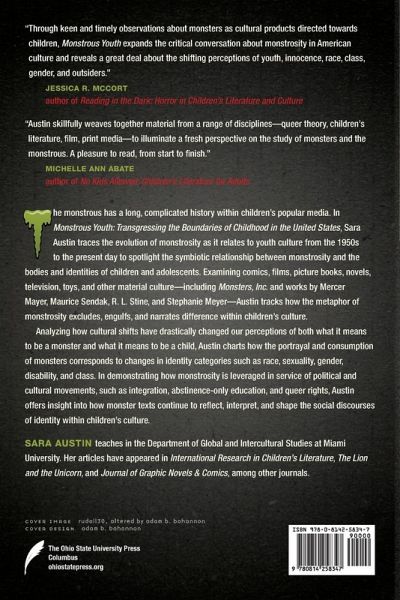 The monstrous has a long, complicated history within children's popular media. In Monstrous Youth: Transgressing the Boundaries of Childhood in the United States, Sara Austin traces the evolution of monstrosity as it relates to youth culture from the 1950s to the present day to spotlight the symbiotic relationship between monstrosity and the bodies and identities of children and adolescents. Examining comics, films, picture books, novels, television, toys and other material culture-including Monsters, Inc. and works by Mercer Mayer, Maurice Sendak, R. L. Stine, and Stephanie Meyer-Austin tracks how the metaphor of monstrosity excludes, engulfs, and narrates difference within children's culture. Analyzing how cultural shifts have drastically changed our perceptions of both what it means to be a monster and what it means to be a child, Austin charts how the portrayal and consumption of monsters corresponds to changes in identity categories such as race, sexuality, gender, disability, and class. In demonstrating how monstrosity is leveraged in service of political and cultural movements, such as integration, abstinence-only education, and queer rights, Austin offers insight into how monster texts continue to reflect, interpret, and shape the social discourses of identity within children's culture.
