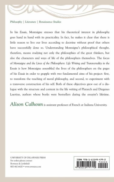 Acknowledgments Introduction: Montaigne and Transversality Chapter 1: Montaigne's Two PlutarchsPlutarch and the Lives as Moral Philosophy Comparison in the Sixteenth Century and Plutarch's Parallels Comparison and Knowledge Parallel Lives of the Philosophers Montaigne Parallel to the Philosophers Opposition and Discussion: Montaigne and La Boétie Chapter 2: Assembling Strange Flowers: Montaigne and Diogenes Laertius Doxographer, Poet, BiographerMontaigne's Passage Montaigne's Philosophical Tabloids Lowered Standards for Wisdom and Virtue: Stories of Hypocrisy and Conversion Chapter 3: Montaigne's Pyrrho Sources for Montaigne's Pyrrho The Renaissance Transmission of the Life of Pyrrho In Search of a Livable Skepticism Pyrrho and Montaigne in the Same Boat A Language of Humanness Chapter 4: The Deaths of the Philosophers Getting Used to Death: Montaigne's Brother, The Riding Accident, La Boétie "The Bottom of the Pot": Unmasking and Speaking Plain French Philosophers in Pain: Seneca and EpicurusA "Reasonable Exit": Socrates and Diogenes of SinopeChapter 5: The Fabrication of Michel de Montaigne Marie de Gournay's Transverse Self The Vie de Montaigne and the Honnête Homme The Pierre Coste Edition: Continuing the Essay Project Conclusion : Montaigne's Transverse Self Bibliography Index About the Author