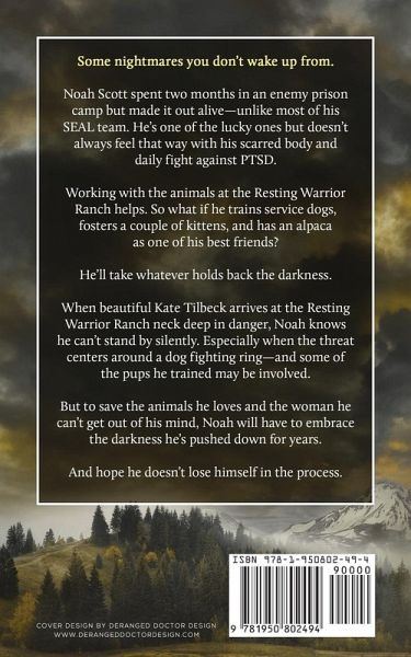 Some nightmares you don't wake up from. Noah Scott spent two months in an enemy prison camp but made it out alive-unlike most of his SEAL team. He's one of the lucky ones but doesn't always feel that way with his scarred body and daily fight against PTSD. Working with the animals at the Resting Warrior Ranch helps. So what if he trains service dogs, fosters a couple of kittens, and has an alpaca as one of his best friends? He'll take whatever holds back the darkness. When beautiful Kate Tilbeck arrives at the Resting Warrior Ranch neck deep in danger, Noah knows he can't stand by silently. Especially when the threat centers around a dog fighting ring-and some of the pups he trained may be involved. But to save the animals he loves and the woman he can't get out of his mind, Noah will have to embrace the darkness he's pushed down for years. And hope he doesn't lose himself in the process.